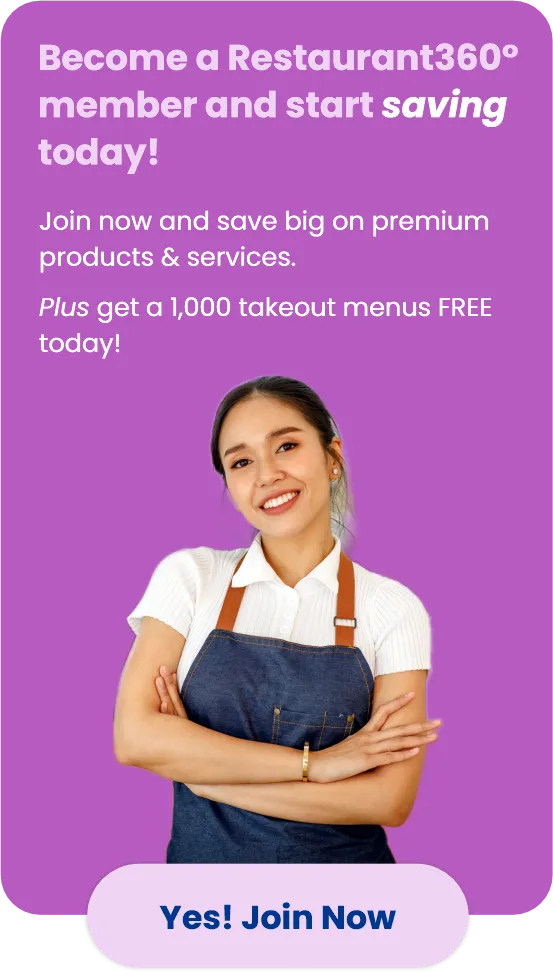 Restaurant360° is an annual membership program that gives restaurant owners and operators member-only savings on the promotional products and services they use most!